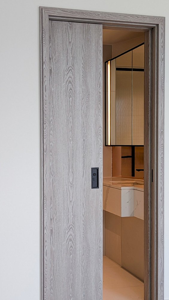 The doorsets specified on this development were manufactured in a stunning marina grey veneer finish to the front entrance doors along with an embossed pearl oak finish to the internal flat entrance doorsets all with matching wrapped frames and architraves, giving a consistent and elegant aesthetic throughout.